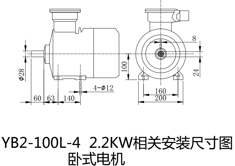 YB2系列防爆電機(jī)由于其具有高效節(jié)能、低噪聲、長壽命、高可靠性的特點(diǎn),所以在國內(nèi)是被應(yīng)用最廣的防爆電機(jī)。今天跟大家解讀一下YB2-4-2.2KW臥式防爆電機(jī)的安裝尺寸圖都代表什么。