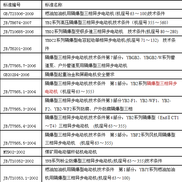 防爆電機(jī)的使用場所比較多,應(yīng)用比較普遍。防爆電機(jī)是防爆場所專用的電機(jī)是國標(biāo)下強(qiáng)制規(guī)定的,相應(yīng)的行業(yè)標(biāo)準(zhǔn)和執(zhí)行標(biāo)準(zhǔn)如果不達(dá)標(biāo)就是不合格產(chǎn)品,我公司所生產(chǎn)的防爆電機(jī)都是按照國標(biāo)行業(yè)標(biāo)準(zhǔn)的規(guī)范下生產(chǎn)出來的,現(xiàn)在所執(zhí)行的行業(yè)標(biāo)準(zhǔn)如下:
