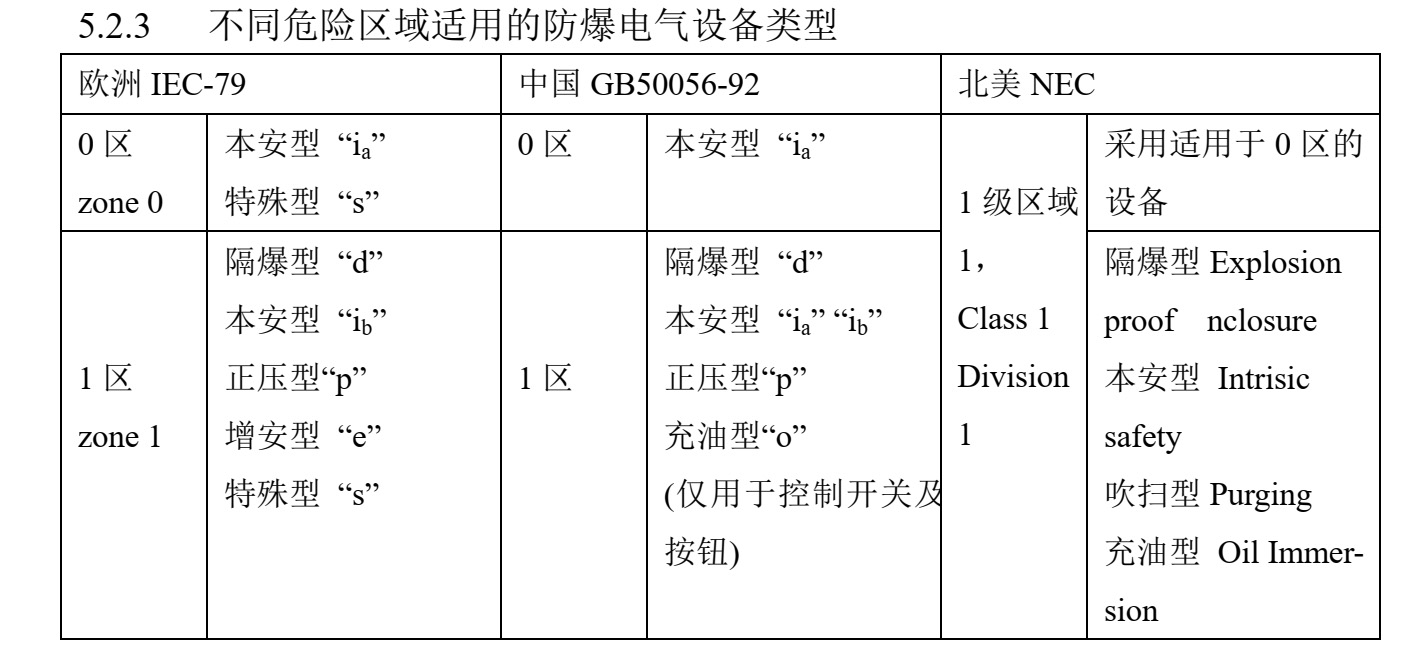 注:1于0區(qū)的防爆設(shè)備可用于1區(qū)和2區(qū);用于1區(qū)的設(shè)備可用于2區(qū);