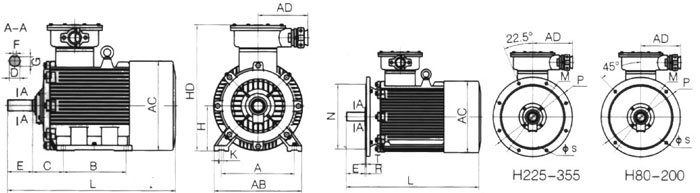 YBK2(YBK3)系列煤礦井下用隔爆型三項(xiàng)異步電動(dòng)機(jī)主要使用在采掘面以下,視為煤礦井下采掘工作面機(jī)械設(shè)計(jì)的專(zhuān)用電機(jī),機(jī)座有鋼板焊接形成,風(fēng)罩,接線盒、絕緣結(jié)構(gòu)采取加強(qiáng)措施。YBK2系列煤礦井下用隔爆型三項(xiàng)異步電動(dòng)機(jī)按GB3836.2《爆炸性氣體環(huán)境用電氣設(shè)備 第2部分 隔爆型“d”》的規(guī)定,制成隔爆型,防爆標(biāo)志為“Exdl”。主要用于煤礦井下惡劣工作環(huán)境。YBK2系列煤礦井下用隔爆型三項(xiàng)異步電動(dòng)機(jī)除機(jī)座、風(fēng)罩、接線盒有特殊要求外,其余如果氣體性能、安裝尺寸、額定功率等均與YB2系列電機(jī)相同。